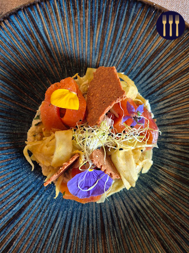 L'Auberge de la Roussille, charmante bâtisse datant de 1803, et proche du centre-ville de Niort, vous invite à découvrir un cadre bucolique en bord de Sèvre. Pour y accéder, il suffit de franchir un petit pont qui vous mène vers cette maison de campagne au charme indéniable. L'intérieur, récemment rénové, allie élégance et confort, créant une atmosphère chaleureuse. Que vous choisissiez de vous installer près du feu ou sur la terrasse ombragée par des platanes centenaires, vous serez séduit par la cuisine du chef Mathieu Schmitt. Sa cuisine, à la fois gourmande et soignée, privilégie une approche locavore et anti-gaspillage. Les assiettes sont aussi belles que délicieuses, avec des cuissons parfaitement maîtrisées et des produits frais et locaux aux arômes gourmands. Servi avec élégance, chaque plat délicat et original, révèle une attention particulière portée à la qualité des ingrédients choisis avec soin, est une ode à la saisonnalité, reflétant l’engagement du chef pour une cuisine instinctive. Cette expérience culinaire émerveille autant les yeux que les papilles, accompagnée d'une belle carte des vins. La belle maison d'éclusier, nichée dans cet environnement enchanteur, est un véritable havre de paix. La passion du chef pour la gastronomie se ressent dans chaque assiette, offrant une cuisine raffinée et délicieuse bien calibrée, sans superflu. L'accueil attentionné et courtois vient parfaire cette parenthèse culinaire et humaine inoubliable, faisant de L'Auberge de la Roussille une adresse incontournable pour les amateurs de bonne cuisine et de nature.