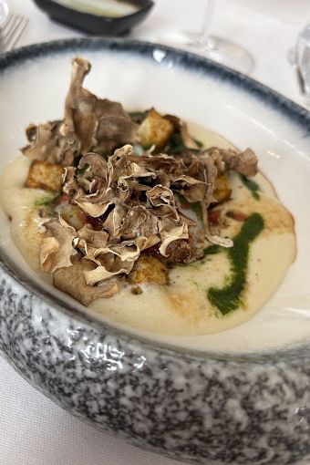 Dans sa maison de ville, véritable havre de paix aux abords de Cannes, la décoration soignée et chic crée une atmosphère apaisante. La terrasse ombragée de platanes, où se mêlent le chant des cigales et le clapotis d'une fontaine en pierre, invite à la méditation culinaire. Le chef Bessem Ben Abdallah y déploie tout son talent, offrant une cuisine personnelle et sensible, remarquable et raffinée. Chaque plat est une surprise, mettant en avant des mets de saison, frais et locaux, élaborés à partir de produits d'excellente qualité qui capturent l'essence méditerranéenne. À noter que le chef sert sa propre sélection parcellaire d'huile d'olive tunisienne, et élève des poules pour avoir des œufs frais de qualité ! Les desserts, confectionnés par une pâtissière de talent, sont de véritables œuvres d’art, tout aussi délicieux que les plats principaux. Le maître d'hôtel et le sommelier, attentifs et prévenants, sont là pour combler vos désirs et sublimer les accords mets-vins. Enfin, le chef lui-même vient vous saluer en toute simplicité, partageant sa passion et son savoir-faire. Cette adresse d'exception, où la gastronomie rime avec convivialité, est à ne pas manquer pour tous les amateurs de bonne cuisine et de moments inoubliables.
