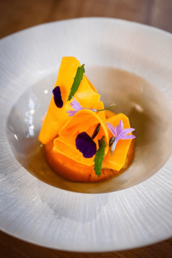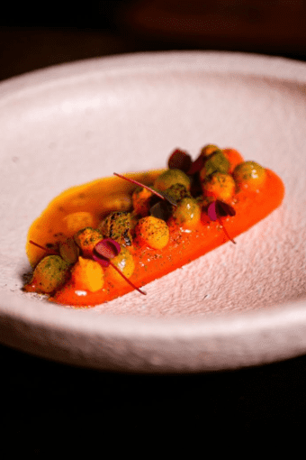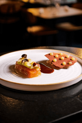 À l’écart des artères les plus fréquentées de Strasbourg, dans le quartier vivant de la Krutenau, Bistrot Coco s’affirme depuis 2019 comme l’une des tables bistronomiques les plus captivantes de la ville. À sa tête, le jeune chef Constant Meyer propose une cuisine lisible et engagée, où technique et créativité se conjuguent avec naturel. Le menu carte blanche constitue le cœur de l’expérience. Conçu comme une véritable narration culinaire, il confie au chef la liberté de composer un parcours dégustation évolutif, au fil du marché et de son inspiration. Chaque assiette témoigne d’un équilibre subtil entre inventivité et rigueur, où le produit prime. Les ingrédients, majoritairement locaux et issus de circuits courts, sont travaillés avec précision et respect, tandis que les sauces, signature de la maison, apportent profondeur et cohérence, structurant les assiettes jusqu’à la dernière bouchée. La cuisine se situe dans cette zone subtile où la bistronomie rencontre une ambition gastronomique pleinement assumée. Renouvelés au rythme des saisons, les menus explorent poissons, viandes et compositions végétariennes avec le même soin, toujours articulés autour d’une progression pensée, alternant textures, intensités et contrastes. Les accords mets et vins, intelligemment construits, accompagnent chaque étape du repas, offrant des compléments subtils sans jamais distraire de l’assiette. Le cadre contribue pleinement à l’expérience : lignes épurées, bois sombre, touches noires et éclairages tamisés créent une atmosphère feutrée et élégante. La cuisine ouverte instaure une proximité appréciable entre brigade et convives, tandis que le service, attentif et discret, rythme le repas avec fluidité et précision. Bistrot Coco réussit le pari d’une gastronomie exigeante mais jamais ostentatoire, qui allie liberté créative, saisonnalité et maîtrise technique. Chaque assiette révèle la maîtrise et la finesse d’une cuisine contemporaine, où l’exigence rencontre la liberté créative. Une adresse rare et raffinée, à découvrir pleinement et à inscrire parmi les incontournables de la scène culinaire strasbourgeoise.