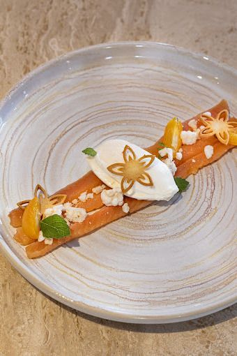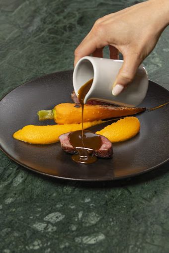 Au cœur du village d’Argentière, à quelques encablures de la frontière suisse, cette demeure hôtelière fondée au milieu du XIXᵉ siècle impose une présence presque intemporelle dans le paysage alpin. L’architecture, caractéristique des grandes bâtisses de villégiature de l’époque, a fait l’objet d’une rénovation ambitieuse, menée avec une intelligence rare : ici, le geste contemporain ne cherche pas à supplanter l’existant, mais à en révéler les lignes de force. Les volumes ont été aérés, les matières réchauffées, et l’ensemble restitue aujourd’hui une atmosphère où le patrimoine dialogue avec une esthétique plus actuelle, sans jamais rompre l’équilibre. Dans ce cadre, la proposition gastronomique s’inscrit dans une logique de territoire affirmée. Le chef Maxime Gosse déploie une cuisine bistronomique qui s’éloigne des poncifs de la table de montagne pour en proposer une lecture plus nuancée, presque introspective. Le parti pris est clair : travailler le produit dans sa plus stricte saisonnalité, en privilégiant des circuits d’approvisionnement courts, à l’échelle des Alpes françaises, suisses et italiennes. Cette transversalité géographique nourrit une identité culinaire cohérente, où les influences se répondent sans jamais brouiller le propos. L’écriture des assiettes témoigne d’une recherche d’équilibre entre densité et lisibilité. Les bases classiques – jus réduits, cuissons maîtrisées, textures franches – servent de socle à des compositions qui évitent l’esbroufe. La cuisine joue sur des registres complémentaires : la profondeur des saveurs montagnardes, souvent associée à des notes plus vives ou végétales, vient alléger des structures parfois généreuses. Le résultat se traduit par une sensation de confort maîtrisé, où la gourmandise n’exclut ni précision ni tension gustative. Le service du midi, articulé autour d’une formule plus concise, permet de saisir l’essence de cette approche dans une lecture rapide mais fidèle. Le soir, la carte gagne en amplitude et en complexité, laissant au chef l’espace nécessaire pour développer une narration plus aboutie. Cette progression dans l’offre participe d’une véritable réflexion sur les usages : adapter l’expérience au rythme des convives, qu’ils soient de passage ou installés pour un séjour prolongé. La salle intérieure, d’une capacité mesurée, privilégie une atmosphère enveloppante, presque domestique dans son intention, tandis que la terrasse, déployée aux beaux jours, ouvre littéralement l’expérience sur le paysage. La vue sur le massif du Mont-Blanc n’est pas ici un simple argument, mais un élément constitutif de la mise en scène : elle inscrit la dégustation dans un rapport direct à l’environnement, renforçant la pertinence d’une cuisine profondément ancrée dans son milieu. En contrepoint, le bar adopte une posture plus libre, mais non moins soignée. Pensé comme un lieu de transition autant que de destination, il accompagne les différents moments de la journée avec une offre de boissons et de cocktails construite avec cohérence, sans céder à l’effet de mode. L’ensemble contribue à faire de l’établissement un espace de vie à part entière, au-delà de sa seule dimension hôtelière. Enfin, la situation géographique de l’adresse parachève cette proposition. À la croisée des domaines skiables de Chamonix et de l’itinéraire du Tour du Mont-Blanc, elle capte une clientèle exigeante, familière des grands espaces comme des tables de caractère. Dans ce contexte, la cuisine de Maxime Gosse apparaît comme une réponse pertinente : une gastronomie de lieu, sincère et structurée, qui privilégie la justesse à la démonstration, et inscrit durablement l’établissement dans le paysage culinaire alpin contemporain.