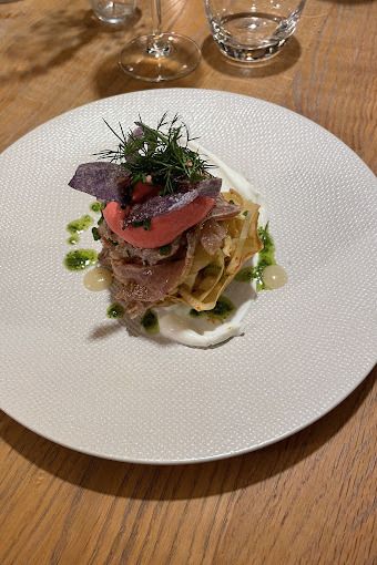 Sur le port abrité de Ploumanac’h, à Perros-Guirec, La Table Des Rochers s’inscrit avec justesse dans la lignée des belles maisons côtières où l’élégance du cadre répond à l’exigence de l’assiette. Face aux mâts immobiles et aux lumières changeantes de la baie, l’adresse cultive une atmosphère à la fois feutrée et lumineuse, dans une salle d’une trentaine de couverts qui privilégie l’intimité et la précision du service. La situation est rare : au calme, en retrait de l’agitation, à quelques pas du Sentier des Douaniers, l’établissement offre un décor naturel spectaculaire qui accompagne l’expérience sans jamais la distraire. Élisa Fostier orchestre la salle avec assurance et délicatesse. L’accueil est attentif, le rythme du service parfaitement cadencé, sans rigidité. L’accueil, d’une courtoisie sincère, installe d’emblée un climat de confiance propice à une dégustation concentrée. En cuisine, le chef Thibault Jézéquel affirme une signature déjà pleinement structurée. Formé au sein de maisons gastronomiques et étoilées, le chef conjugue exigence technique et sensibilité territoriale. Originaire de la région, il revendique un ancrage local sans céder aux facilités du folklore. Sa cuisine, contemporaine et lisible, s’articule autour d’une tension aromatique maîtrisée et d’un respect scrupuleux du produit. La carte, volontairement resserrée, témoigne d’un engagement en faveur de la fraîcheur et de la cohérence saisonnière. Les produits de la mer occupent le premier plan : poissons sauvages, coquillages et crustacés sont travaillés avec une précision millimétrée. Les cuissons, d’une exactitude remarquable, respectent la texture originelle des chairs ; les jus, courts et concentrés, structurent l’assiette avec justesse ; les sauces, liées avec finesse, apportent profondeur et relief sans jamais altérer la lisibilité du propos. Les viandes, à l’image d’un agneau rôti aux algues, révèlent la même rigueur technique et cette capacité à inscrire l’iode dans un dialogue harmonieux avec la terre. L’écriture culinaire se distingue par sa netteté et son équilibre. Les assiettes privilégient la pureté des goûts et la complémentarité des textures, laissant la saison s’exprimer avec franchise. La créativité se niche dans la nuance : une acidité ciselée pour dynamiser un poisson nacré, une note végétale pour alléger une chair dense, une amertume subtile pour prolonger la finale. Jamais ostentatoire, la technique s’efface derrière l’évidence gustative. Dans ce décor de carte postale, La Table Des Rochers propose ainsi une cuisine contemporaine sincère, où la curiosité reste au service du goût. Une adresse régulière, professionnelle, qui confirme sa place parmi les tables de référence de la Côte de Granit Rose.