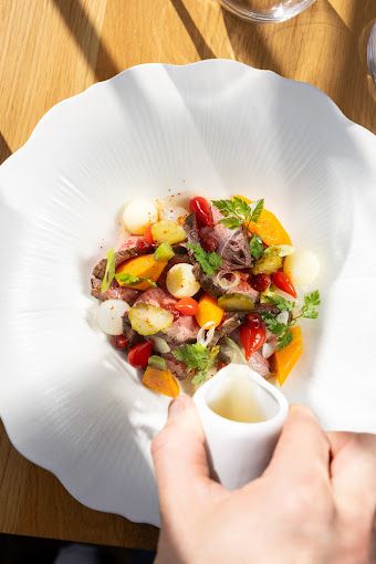 À Maillane, sur la paisible place Frédéric-Mistral, à l’ombre du clocher, Jérémy Scalia a choisi d’inscrire sa cuisine dans une Provence vivante et contemporaine. Originaire de Marseille et passé par des maisons d’exception, jusqu’à l’Hôtel de Tourrel à Saint-Rémy-de-Provence, le chef revendique aujourd’hui une approche épurée, recentrée sur l’essentiel : le produit, la saison et le goût juste. Dans l’écrin discret et élégant de Maison Bernard, bâtisse du XIVe siècle restaurée avec sensibilité, le chef déploie une partition bistronomique d’une grande précision, où la décontraction apparente n’altère en rien l’exigence. La salle, chaleureuse et soignée sans ostentation, installe d’emblée une atmosphère de maison de famille revisitée, où l’on prend le temps de savourer. La carte, volontairement concise, témoigne d’une écriture culinaire maîtrisée et lisible. Ici, point d’esbroufe : chaque assiette repose sur une sélection rigoureuse de produits, sourcés au plus près. Les poissons issus d’une pêche locale et durable dialoguent avec les légumes biologiques de petits producteurs régionaux, dans une interprétation sensible et actuelle du répertoire méditerranéen. La mer s’y exprime avec finesse, sans jamais exclure la terre : un équilibre subtil, renouvelé au fil des saisons, qui structure l’offre autour d’un plat végétarien, d’une proposition marine et d’une assiette carnée. En ouverture, les panisses, hommage assumé au Sud, donnent le ton : texture délicate, goût franc, exécution précise. Elles incarnent à elles seules l’esprit de la maison, entre tradition et justesse technique. Les assiettes qui suivent poursuivent ce dialogue, conjuguant générosité et élégance, lisibilité des saveurs et soin du détail. Les cuissons sont nettes, les jus maîtrisés, les assaisonnements mesurés avec finesse. Le travail du chef se distingue par une forme de retenue maîtrisée : une cuisine qui ne cherche pas à impressionner mais à convaincre, où chaque élément trouve sa place sans jamais masquer l’essentiel. Une signature qui s’inscrit dans une modernité apaisée, fidèle au terroir méditerranéen tout en s’autorisant une lecture personnelle, contemporaine et précise. Les desserts, dans la même veine, privilégient l’équilibre et la gourmandise maîtrisée, venant conclure le repas avec justesse, sans rupture de ton. Maison Bernard ne se limite pas à la table. À l’étage, quatre chambres, dont une suite, prolongent l’expérience dans un esprit de confort élégant. Décorées avec soin, climatisées, elles offrent une halte paisible au cœur du village. Certaines s’ouvrent sur un rooftop confidentiel, dévoilant une vue imprenable sur le clocher de Maillane, entre Alpilles, Luberon et Camargue. Aux côtés du chef Jérémy, Julie son épouse, insuffle à la maison une dimension profondément humaine. L’accueil, sincère et attentif, participe pleinement à l’expérience : ici, le raffinement se conjugue avec simplicité, et l’exigence avec convivialité. Cette adresse singulière réussit ainsi l’équilibre délicat entre table de destination et maison de village, entre exigence gastronomique et hospitalité sincère. Une signature à suivre, où chaque assiette raconte, avec précision et sensibilité, une Provence d’aujourd’hui.