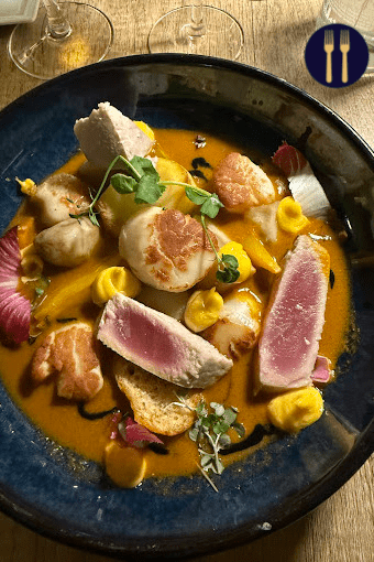 Dans le cœur animé d'Aix-en-Provence, se trouve un trésor culinaire : le restaurant Mitch. Dirigé par Mitch, le propriétaire, et le talentueux chef Erwann Legarss, cet établissement est un véritable bijou de la gastronomie française. Ouvert uniquement le soir, il offre une carte gourmande et créative qui évolue au fil des saisons, mettant en avant des produits frais du marché. La cuisine moderne de Mitch respecte les saisons et propose des saveurs originales et équilibrées, ravissant les palais des gourmets. La charmante salle voûtée en sous-sol crée une atmosphère feutrée, parfaite pour un dîner mémorable. La terrasse, située le long de la rue piétonne, permet de profiter de l'animation environnante tout en dégustant des plats raffinés. L'engagement passionné de Mitch et Erwann se reflète dans chaque assiette, garantissant une expérience gustative sans faute. De plus, des conseils avisés en matière de vins, un accueil chaleureux et un service attentionné font de chaque visite une promenade gastronomique inoubliable. Au restaurant Mitch, chaque repas est une célébration des saveurs et de la convivialité.