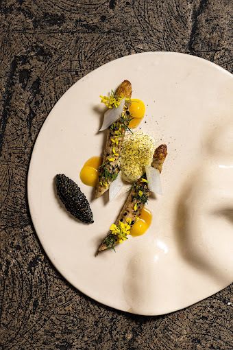 Dans le 1er arrondissement de Paris, à deux pas du Palais-Royal, se niche un trésor culinaire : Nhome, un restaurant gastronomique intimiste dirigé par le chef Matan Zaken. Ce lieu singulier, aménagé dans une salle voutée aux pierres apparentes, pensé comme le théâtre d'un dîner privé où chaque dîner se transforme en une représentation gastronomique unique. À l'entrée, une table sur mesure, impressionnante par sa taille et ses courbes, accueille jusqu'à 20 convives, promettant une expérience mémorable. Le chef Matan Zaken, reconnu pour sa créativité et son savoir-faire, propose une expérience culinaire qui promet d’éblouir les convives par un menu dégustation audacieux en dix étapes, servi à l'aveugle. Cette approche immersive invite les convives à se laisser surprendre par des plats qui célèbrent les produits de saison. Chaque bouchée est une danse de saveurs, où les ingrédients se métamorphosent sous les mains expertes du chef. Matan Zaken réussit à imposer une signature forte à ses créations, alliant textures et goûts avec brio. Les plats, tout en étant ancrés dans la tradition, explorent des accords inattendus et des cuissons parfaitement maîtrisées. Le restaurant Nhome ne se contente pas d’offrir une simple dégustation ; il propose une immersion sensorielle. Les convives sont invités à se laisser surprendre par des saveurs qui se dévoilent au fil des plats, chaque bouchée étant une nouvelle découverte. La magie opère dans cette salle intimiste, où l’atmosphère chaleureuse et conviviale ajoute à l’expérience gastronomique. Les convives se retrouvent autour de la grande table, partageant non seulement un repas, mais aussi des moments d'échange et de découverte. Chaque dîner devient ainsi un événement, où l’art de la gastronomie se marie à l’art de recevoir. Pour accompagner ces créations gastronomiques, le restaurant Nhome propose une carte des vins soigneusement élaborée par Ulysse Hivroz, son sommelier. Chaque vin est choisi avec soin pour sublimer les plats, enrichissant l’expérience gustative des convives. Le service, prévenant et attentif, s'assure que chaque détail contribue à faire de votre dîner un moment inoubliable. En conclusion, Nhome est bien plus qu’un simple restaurant. C’est un voyage sensoriel au cœur de la gastronomie parisienne, orchestré par un chef passionné et une équipe dévouée. Que vous soyez un épicurien en quête de nouvelles découvertes ou simplement en quête d'une soirée mémorable, Nhome vous promet une expérience culinaire inégalée, où chaque plat raconte une histoire et chaque moment est à savourer au cœur d'un lieu tout à fait exceptionnel et insolite.
