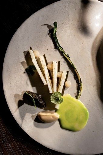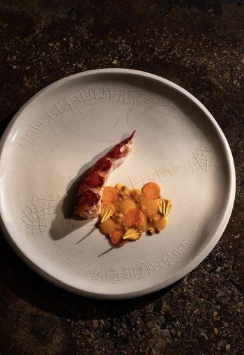 À deux pas du Palais-Royal, dans le très feutré 1er arrondissement, Nhome s’impose comme une adresse à part : un restaurant gastronomique intimiste, pensé comme une expérience totale, à mi-chemin entre le dîner privé et la mise en scène culinaire. Installé dans une salle voûtée aux pierres apparentes, le lieu cultive une atmosphère confidentielle, presque secrète, où l’on pénètre comme dans un écrin. Dès l’entrée, le décor donne le ton. Une table sur mesure, spectaculaire par ses lignes et ses courbes, réunit jusqu’à vingt convives dans une configuration qui favorise le partage tout en conservant cette impression de privilège : celle d’assister à une représentation unique, orchestrée au plus près du geste. Aux commandes, le chef Matan Zaken signe une partition audacieuse, portée par une créativité affirmée et une technique rigoureuse. Son menu dégustation, décliné en dix étapes servies à l’aveugle, invite à lâcher prise : ici, on accepte de se laisser guider, de ne pas chercher à deviner, mais de ressentir. Chaque séquence célèbre le produit de saison dans une approche immersive, où la surprise n’est jamais gratuite mais toujours construite. La cuisine frappe par sa capacité à conjuguer textures et reliefs aromatiques avec une grande précision. Les assiettes jouent sur les contrastes, croquant et fondant, tension acide et douceur, chaleur épicée et notes végétales, tout en conservant une cohérence d’ensemble. Ancrée dans une base classique, la proposition s’autorise des accords inattendus et des associations plus risquées, maîtrisées par des cuissons justes et une lecture moderne du goût. La signature du chef s’affirme au fil du menu : une cuisine expressive, sensible, pensée comme une narration. Car Nhome ne se contente pas d’enchaîner des plats : il construit un voyage sensoriel. L’expérience prend tout son sens dans cette salle intimiste, où la proximité avec la cuisine et la disposition autour de la grande table créent une dynamique rare. On partage un repas, certes, mais aussi des regards, des échanges, une énergie collective qui renforce l’impression d’événement. Les accords, menés par le sommelier Ulysse Hivroz, prolongent cette quête de justesse. La sélection des vins, élaborée avec finesse, soutient les intentions du chef et participe pleinement à la progression du menu, en jouant tantôt la résonance, tantôt le contraste, toujours au service du plat. Le service, attentif et fluide, accompagne la soirée avec précision, veillant à ce que chaque détail, rythme, confort, explications, contribue à la qualité du moment. Nhome apparaît ainsi comme une adresse de destination : une table confidentielle, exigeante, intensément contemporaine, où l’on vient chercher bien plus qu’un dîner. Une expérience gastronomique singulière, à vivre comme une soirée “hors du temps”, dans un Paris rare et privilégié.