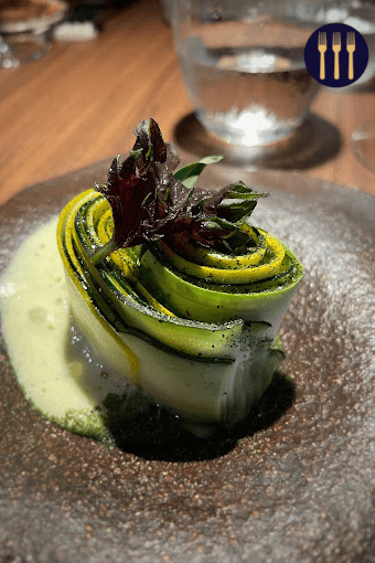 De retour aux sources, le jeune et talentueux chef castelroussin Adam Blondeau a su imposer son style avec brio. Situé à deux pas de l'Hôtel de Ville, son restaurant se distingue par une façade grise sobre où trône un logo feuillage, symbole de son ingrédient de prédilection : le végétal. Dès l’entrée, le décor épuré séduit par l’alliance harmonieuse de matériaux naturels, pierre et bois, mêlés à un mobilier contemporain au dessin précis. Cette combinaison crée une atmosphère à la fois chaleureuse et moderne, invitant à une expérience culinaire unique. Dans l’assiette, Adam Blondeau propose des créations monoproduits où le goût et la cuisson sont minutieusement travaillés. Sa cuisine exprime une contrainte créatrice assumée : tantôt monoproduit, tantôt strictement locale ou totalement végétale, chaque plat se révèle ludique et techniquement parfait. Cette approche offre une expérience gastronomique aussi jouissive que surprenante, où la simplicité cache une grande complexité. Le jeune chef impressionne par sa maîtrise et sa créativité, fruits d’un parcours riche en expériences dans de grandes maisons à travers la France. De retour sur ses terres natales, il fait le pari d’une grande table moderne et authentique, où s’entrelacent harmonieusement les influences de ses voyages. Malgré sa jeunesse, Adam Blondeau affiche plusieurs cordes à son arc : la maîtrise des fermentations, visible notamment dans ses pickles, l’utilisation d’herbes fraîches issues de son propre jardin, ainsi que des clins d’œil ludiques au terroir local. Sa cuisine place le produit au centre de tout, avec des assiettes épurées qui ne trichent jamais sur la qualité des ingrédients. Enfin, la jolie cave, bien que courte, offre une sélection soignée mêlant vins locaux et belles découvertes étrangères. Adam Blondeau signe ici une adresse prometteuse où authenticité et créativité se rencontrent pour le plus grand plaisir des palais. Son retour aux sources marque une nouvelle ère gastronomique à Châteauroux.
